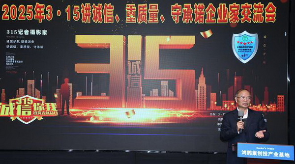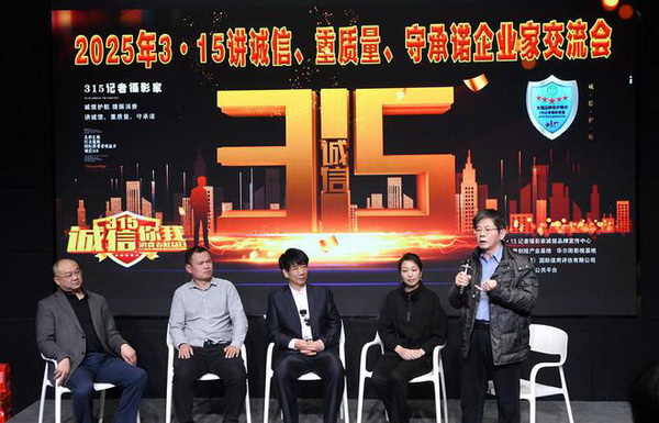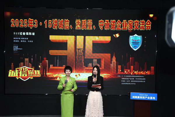 國(guó)際數(shù)字傳媒港北京3月17日電 記者 汪志民 ? 通訊員 李月 王飛 張?chǎng)巫?/strong> 在國(guó)際消費(fèi)者權(quán)益日到來(lái)之際,3月15日,“2025年3·15講誠(chéng)信、重質(zhì)量、守承諾企業(yè)家交流會(huì)”在北京鴻鵠巢創(chuàng)投產(chǎn)業(yè)基地隆重召開(kāi),共話數(shù)字經(jīng)濟(jì)時(shí)代誠(chéng)信建設(shè)新路徑。以“質(zhì)量為本、誠(chéng)信為魂”為核心理念,通過(guò)發(fā)布行業(yè)白皮書(shū)、建立監(jiān)督網(wǎng)絡(luò)等七大舉措,構(gòu)建數(shù)字經(jīng)濟(jì)時(shí)代企業(yè)誠(chéng)信建設(shè)新范式。圍繞制度創(chuàng)新引領(lǐng)誠(chéng)信建設(shè)、數(shù)字經(jīng)濟(jì)催生誠(chéng)信新課題、質(zhì)量承諾面臨時(shí)代拷問(wèn)、誠(chéng)信經(jīng)濟(jì)彰顯商業(yè)價(jià)值等進(jìn)行了研討。會(huì)議由315記者攝影家網(wǎng)主辦。 ![]() 2025年3·15講誠(chéng)信、重質(zhì)量、守承諾企業(yè)家交流會(huì)主持人柏荷、子斐(右) ![]() 2025年3·15講誠(chéng)信、重質(zhì)量、守承諾企業(yè)家交流會(huì)發(fā)布白皮書(shū) ![]() 2025年3·15講誠(chéng)信、重質(zhì)量、守承諾企業(yè)家交流會(huì)嘉賓發(fā)言