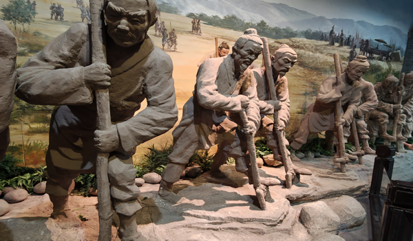 先民勞作生產(chǎn)場景,筆者攝于參觀過程中